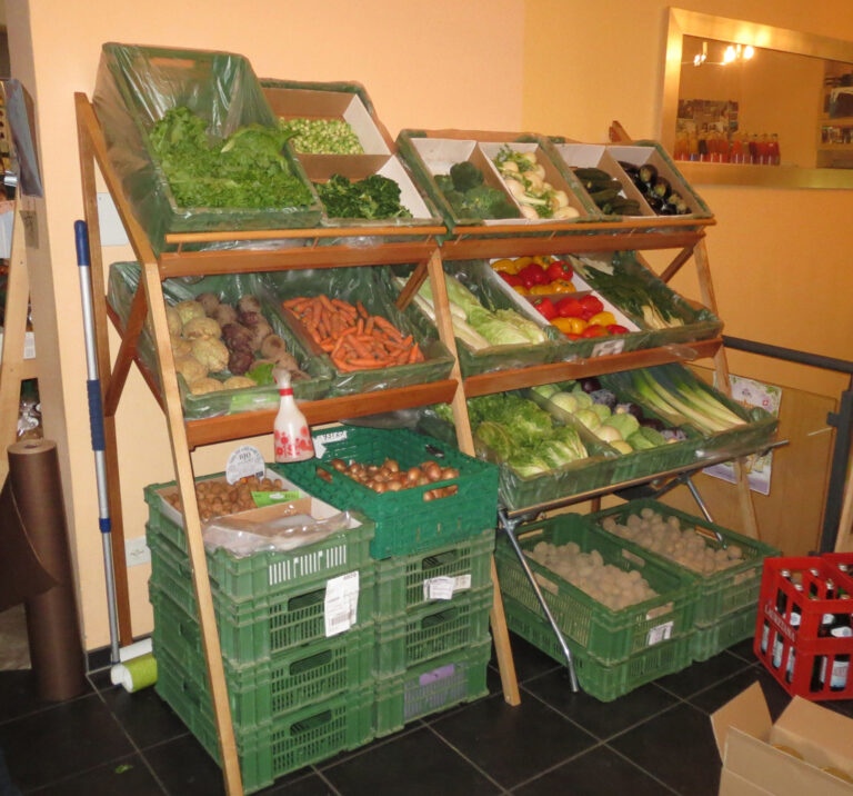 Ein kleines Lager mit Holz- und Metallteilen sowie Elektro- und Sanitärelementen ergänzen das Angebot.